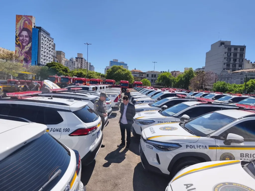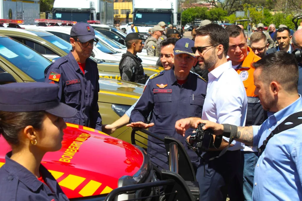 Porto Alegre – RS – O governador Eduardo Leite entregou 101 viaturas e 1,5 mil armas para reforçar Polícia Civil, A Brigada e bombeiros, em ato no Largo Zumbi dos Palmares; 48 municípios serão atendidos; a distribuição inclui para a Polícia Civil seis veículos e pistolas 9×19 mm; para A Brigada 71 automóveis, 200 espingardas e oito carabinas; para os bombeiros 12 viaturas e sete caminhões; o investimento direto é de 46 milhões de reais via FNSP, Fesp, Piseg e Detran-RS e integra um plano que soma 310 milhões em 2024 e 2025 em equipamentos, viaturas e tecnologia.