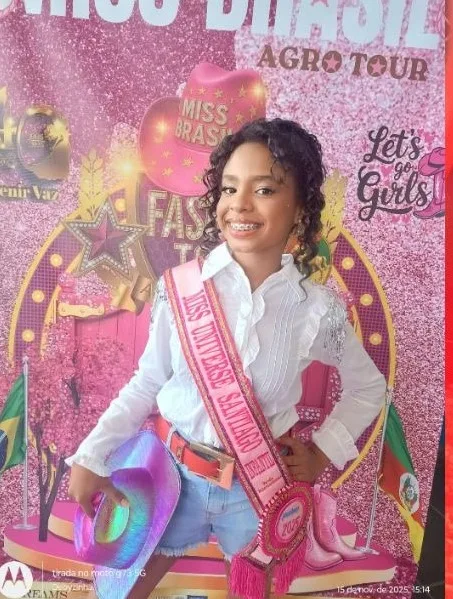 Santiago, RS – Nandrya Jordana Soares, de 11 anos, conquistou o título de Mini Miss Universe RS – Beleza Internacional na etapa realizada no último domingo (16), em Sapucaia do Sul. Nandrya alcançou o segundo lugar na votação da categoria infantil e garantiu vaga para a fase nacional de 2026, em Campo Grande.