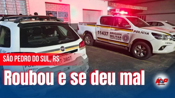 São Pedro do Sul, RS – No início da noite da última quinta-feira (23), a Brigada Militar atendeu a um roubo em uma farmácia de São Pedro do Sul. A vítima relatou que o suspeito, de 42 anos, simulou estar armado ao colocar a mão na cintura e a empurrou, causando lesão em um dos braços. Em seguida, ele pegou itens do local e fugiu.
