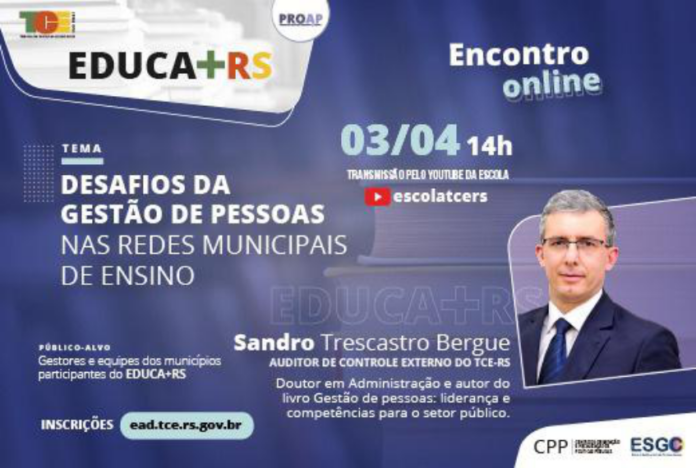 O Tribunal de Contas do Estado (TCE-RS) promove no dia três de abril, às 14h, palestra online com o tema ” Desafios da gestão de pessoas nas redes municipais de ensino”.