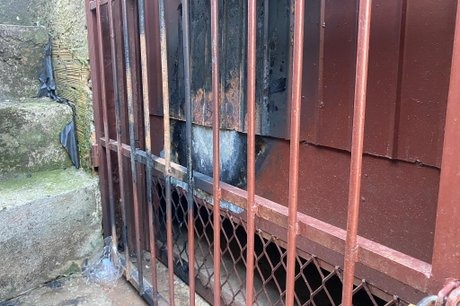 Segundo os Bombeiros, o suspeito amarrou panos nas grades de acesso aos botijões e iniciou o incêndio.