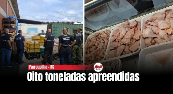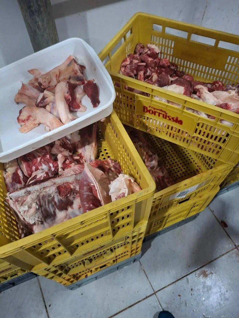 Farroupilha – RS – (Região de Caxias do Sul) – Segundo as equipes que participaram da ação, cerca de 90% do material apreendido era composto por carnes e pescados armazenados de forma inadequada. Também foram encontrados produtos sem procedência, itens vencidos, alimentos sem identificação e produtos mantidos fora da temperatura permitida.