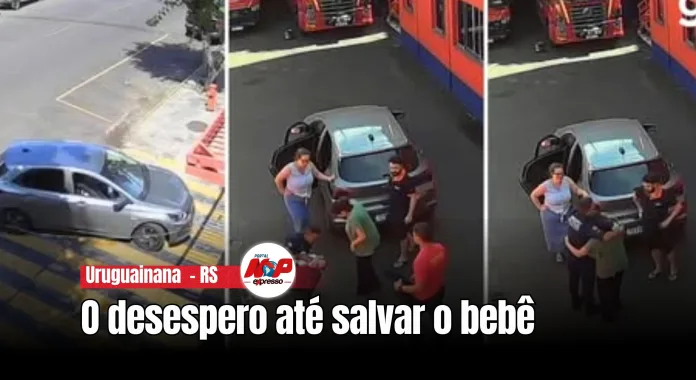 Uruguaiana – RS – (Fronteira Oeste) – Um susto daqueles terminou com final feliz na tarde de quinta-feira. Um bebê de apenas um mês de vida foi salvo pelos bombeiros após se engasgar e parar de respirar. O desespero da família foi gravado pelas câmeras de monitoramento, que mostraram os pais correndo para dentro do quartel com a criança nos braços em busca de socorro.