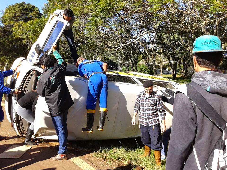 Seis alunos da escola estadual Barros Cassal, no Passo Novo, levaram um grande susto agora pela manhã, quando o veículo capotou em frente ao IFF, na RS 377. Um dos estudantes ficou machucado, sem gravidade, e foi levado ao hospital. O motorista, Marco Antônio Carvalho ficou preso às ferragens, mas não corre risco de morte. A suspeita é que o acidente tenha ocorrido por uma falha mecânica.