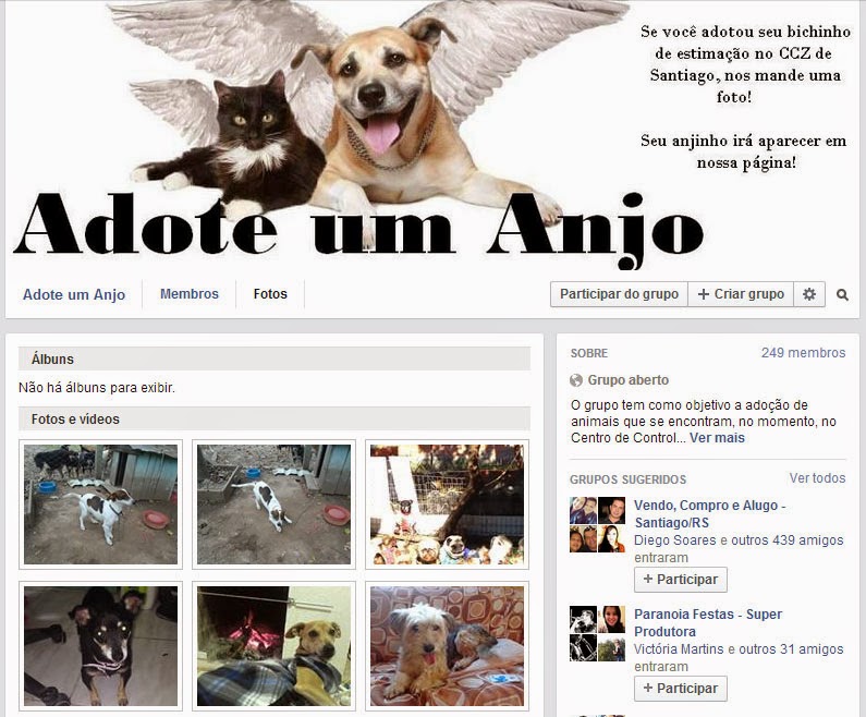 Você é daqueles que gasta um dinheirão para comprar um cachorro ou é contra a ideia de um ser vivo ser transformado em mercadoria? Em Santiago, muita gente está aderindo às adoções de cães e gatos, graças ao incentivo da Associação de Conservação e Proteção dos Animais (Acpa) e do canil. Para estimular mais adoções, foi criada a página “Adote um Anjo”, no Facebook para compartilhar as fotos dos bichinhos adotados e os donos podem contar sua experiência de criá-los. Clique para conhecer.