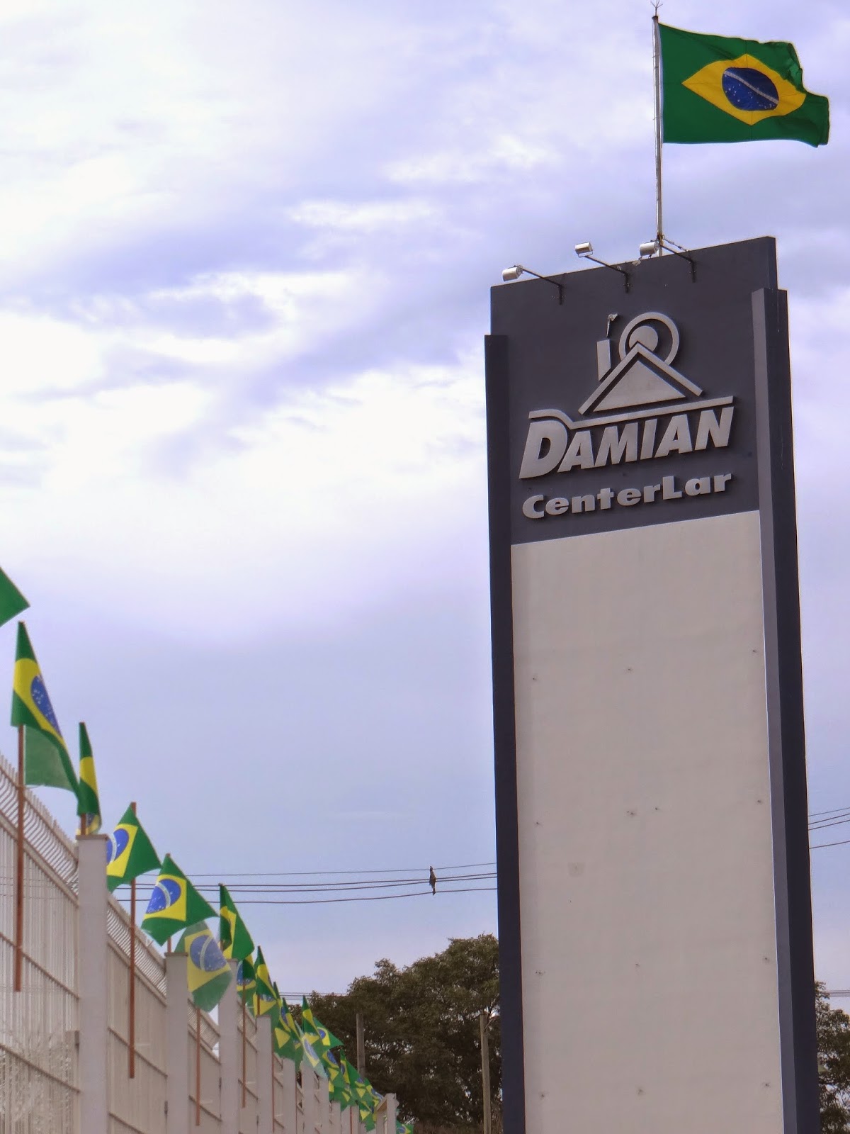 O Damian Center Lar é mais uma empresa santiaguense que entrou no clima da Copa. Além da decoração na loja e estacionamento, uma enorme bandeira do Brasil está hasteada em cima da caixa d’água.