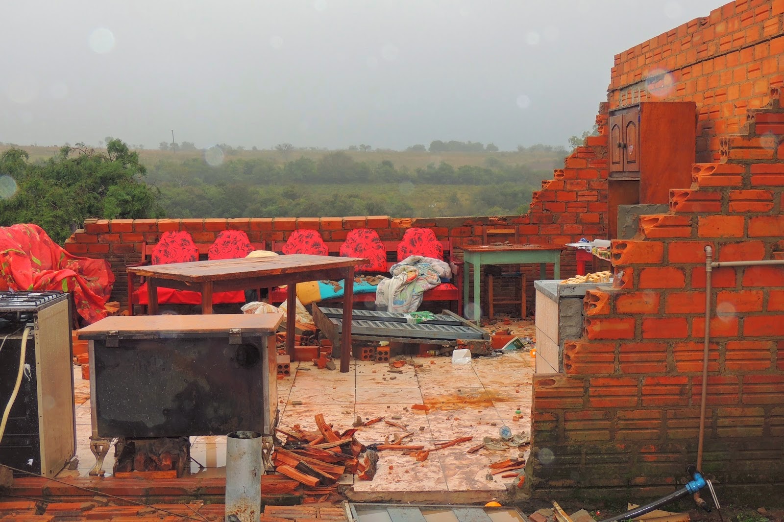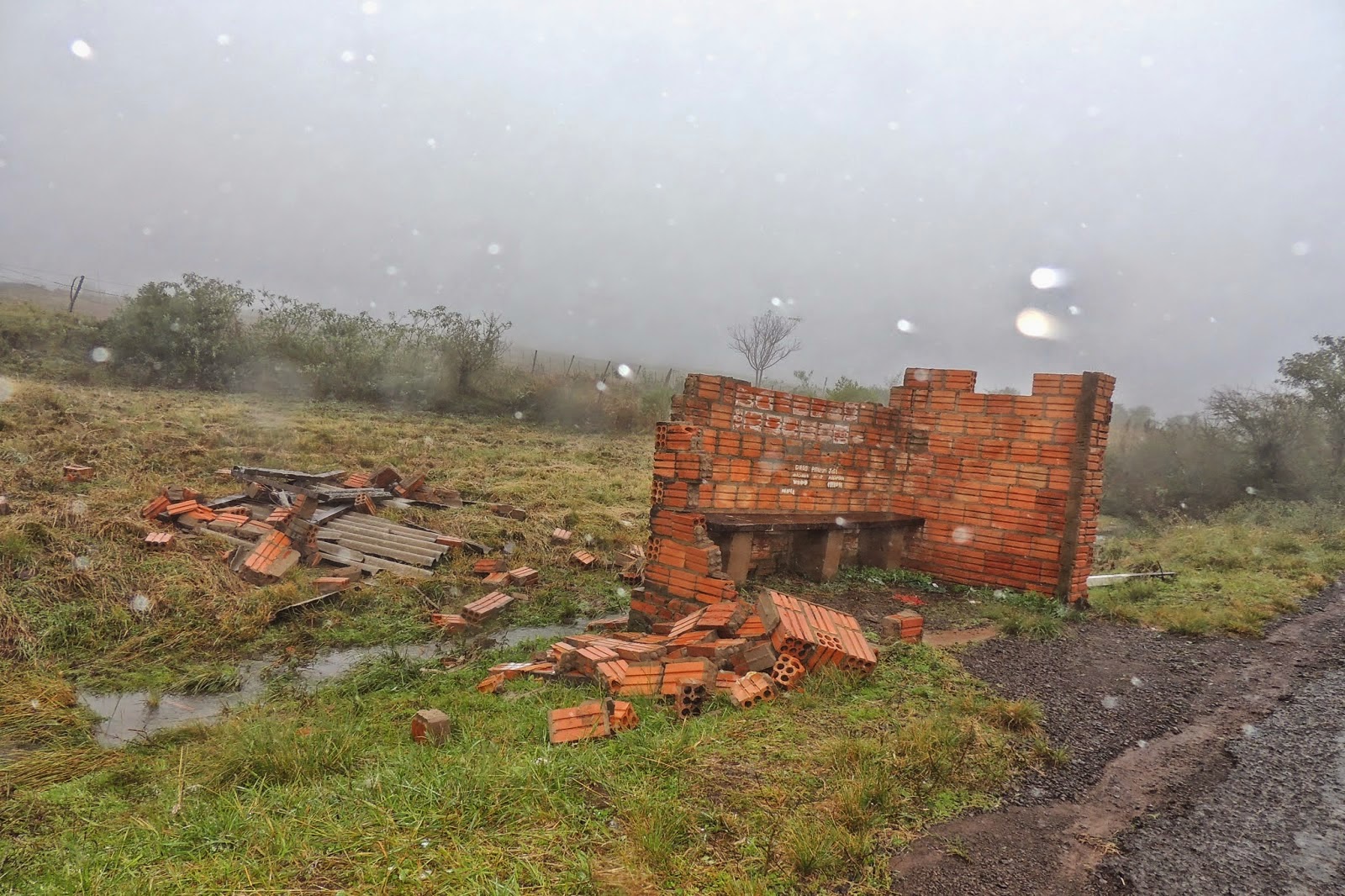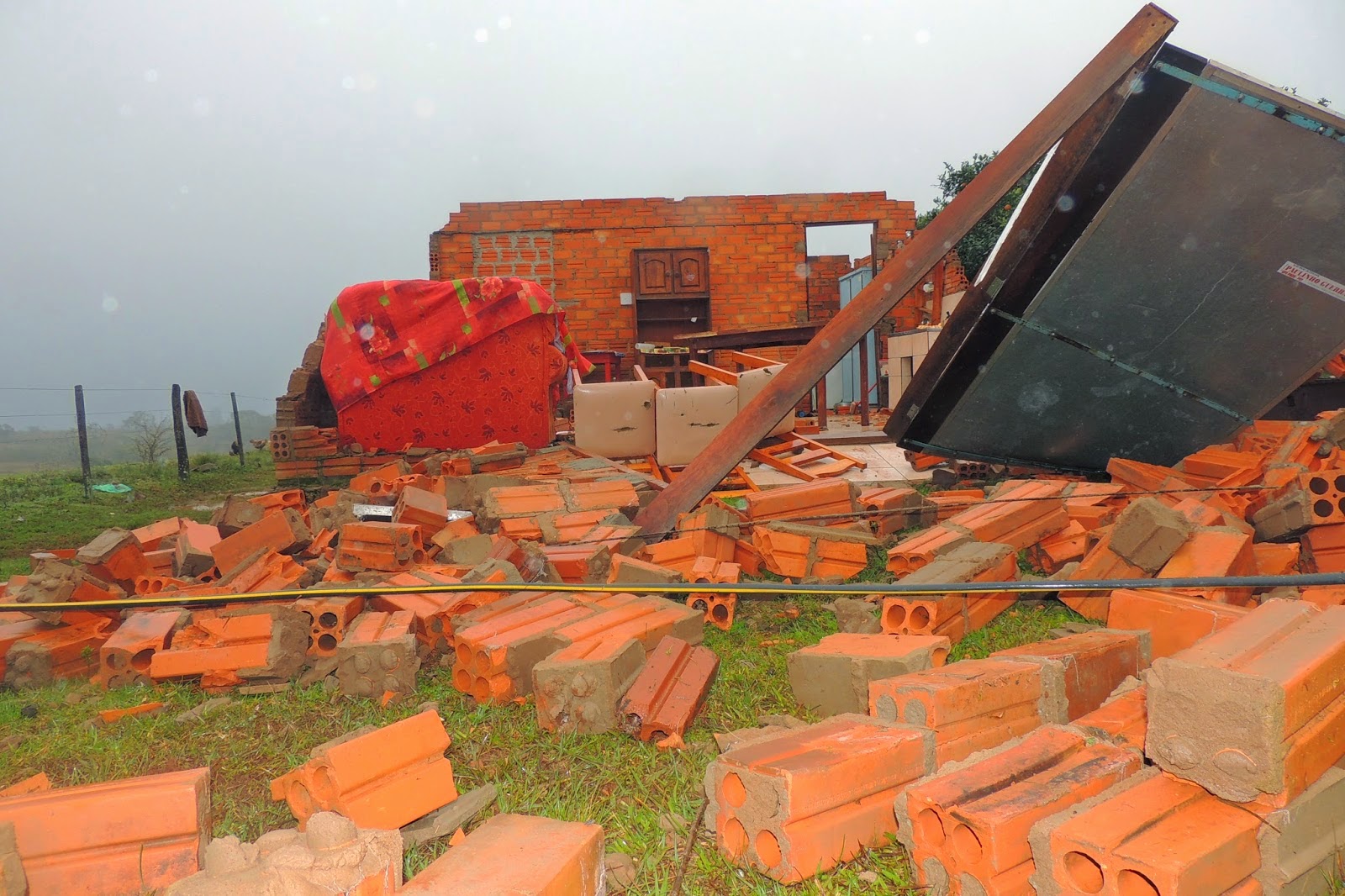 A coisa foi feia na noite de ontem em Unistalda. Raios, granizo e vendaval assustaram os moradores entre 8 e 9 horas da noite. O resultado foram várias casas destelhadas e algumas destruídas, como esta da foto. O vento foi mais forte em Rincão dos Pavanelo, onde o prejuízo foi maior. Equipes da prefeitura se mobilizaram imediatamente para dar atendimento aos desabrigados e atingidos pelo temporal.