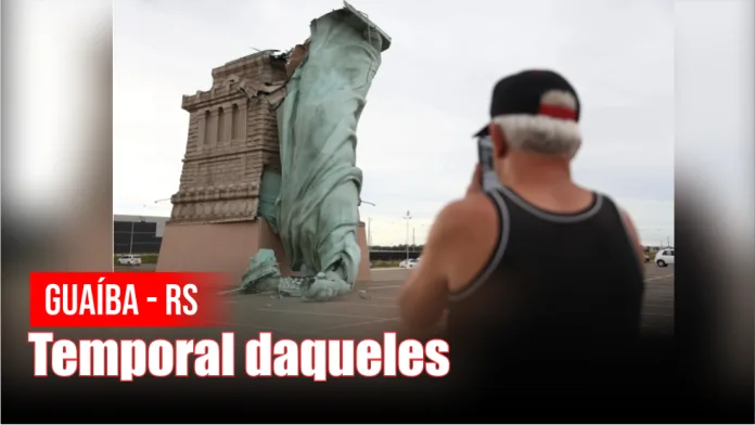 Guaíba – RS – (Região de Porto Alegre). O temporal derrubou a estátua da Havan na tarde desta segunda (15). O vento chegou a 96 km por hora na região. Antes do vendaval, os celulares tocaram com o novo alerta da Defesa Civil.