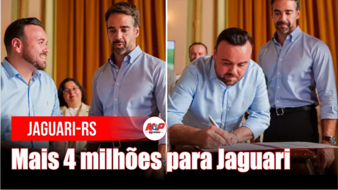 Jaguari – RS – A administração municipal assinou, por meio do prefeito Igor Tambara, junto ao governador Eduardo Leite, a adesão ao Programa Avançar Mais Cidades, garantindo um investimento de R$ 4 milhões. Jaguari se destacou ao figurar em um grupo seleto de apenas 21 cidades contempladas em todo o RS para esta linha de crédito articulada com o Badesul.