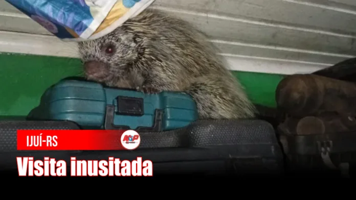 Ijuí. RS – Um ouriço surpreendeu moradores na noite de sexta-feira (6), ao aparecer dentro da garagem de uma casa no bairro Jardim. O animal permaneceu no local por cerca de 15 a 20 minutos.