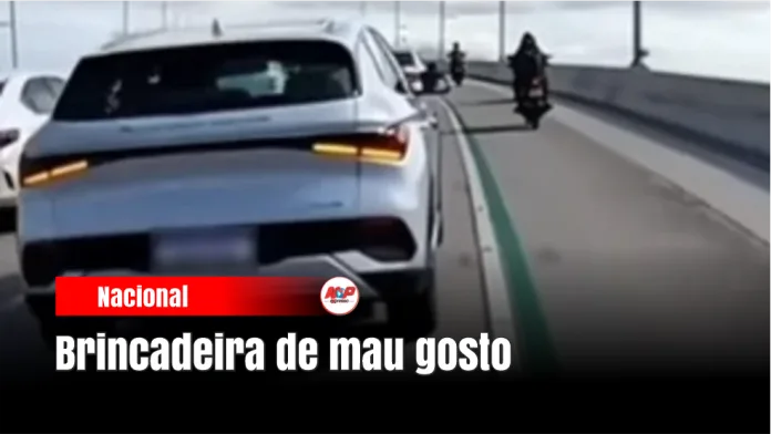 Quem faz isso pode responder por infração gravíssima. O Código de Trânsito Brasileiro prevê multa de 293,47, sete pontos na CNH, suspensão do direito de dirigir e retenção do veículo. A lei enquadra esse tipo de atitude como manobra que coloca outras pessoas em perigo, ainda mais quando há aproximação agressiva e desvio no último instante.