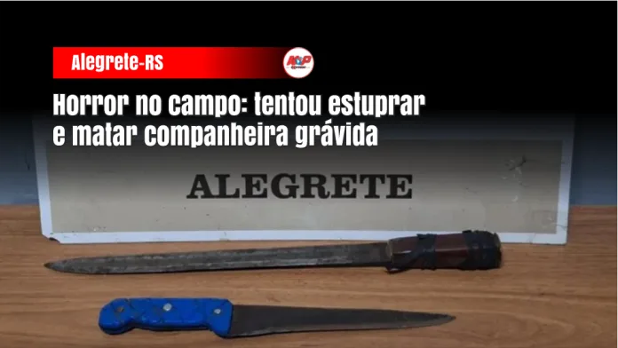 Alegrete – RS – (Fronteira Oeste) – Uma intervenção precisa da Patrulha Rural da Brigada Militar evitou uma tragédia ainda maior na tarde desta quarta-feira (8), em uma propriedade rural a 40 quilômetros do centro de Alegrete. Um sujeito de 30 anos foi preso em flagrante após agredir brutalmente a companheira, de 24 anos, que está no quarto mês de gestação. Ao chegarem ao local, os policiais flagraram o suspeito nu, tentando estuprar a vítima, que já apresentava cortes de facão na cabeça, braços e costas, além de diversas lesões no rosto.