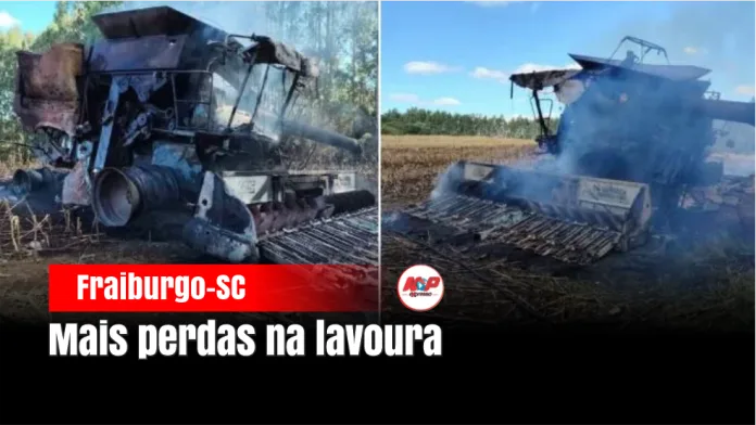 Fraiburgo – SC – (Meio-Oeste) – Uma colheitadeira foi destruída pelo fogo enquanto trabalhava na lavoura de milho no interior do município. O operador não se feriu, mas perdeu a máquina durante a ocorrência.