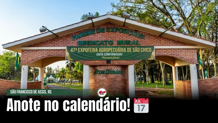 São Francisco de Assis, RS — O Sindicato Rural de São Francisco de Assis e a Rural Jovem anunciaram a realização da 47ª Expofeira Agropecuária, que acontecerá entre os dias 24 e 27 de setembro, de 2026. O evento é considerado um dos mais importantes do calendário agropecuário da região.
