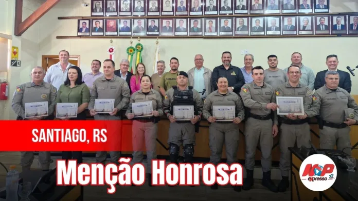 Santiago, RS – O Comando e policiais do 5º RPMon receberam uma Menção Honrosa da Câmara nesta segunda (13/10). A homenagem reconhece o compromisso exemplar, a dedicação e o profissionalismo dos policiais com a segurança pública da região.