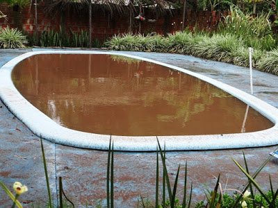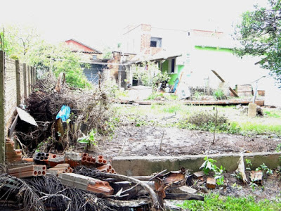 Santiago – Os mais de 80 mm de chuva em duas horas deixaram estragos em vários bairros da cidade. A Emei Mãe Ida, na Vila Rica, não está funcionando hoje, pois houve alagamentos em várias salas. Já a dona Maryneuza D’Avila Ferreira, moradora da rua Carovi, vai levar tempo para se recuperar do susto. A água desceu com tanta força que invadiu sua garagem (arrancou parte da parede e o restante vai cair), entrou pela casa e invadiu o pátio. Não bastasse, a chuva também acumulou em terrenos vizinhos e acabou derrubando um muro, arrastando todo o tipo de lixo para seu pátio. Até a piscina foi invadida pela água, que alcançou mais de um metro, conforme mostra a foto abaixo.