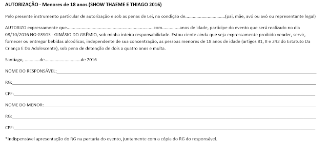 assinada pelos pais ou responsável e entregar na entrada do evento. Quem tem