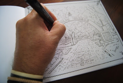 O artista gráfico Ricardo Pinto Barcelos é um apaixonado por Santiago. Ele é dono de uma empresa de serigrafia e já produziu uma infinidade de camisetas, adesivos e outras peças publicitárias divulgando a cidade de alguma forma. Agora, aderiu a onda dos livros para pintar dedicados a crianças e adultos e lançará na Feira do Livro uma publicação inédita: um livro para pintar cenários da cidade. O nome do livro é “Pinte Santiago” e apresenta desenhos de locais como a praça e prédios históricos estimulando que as pessoas pintem a cidade do jeito que a sua imaginação quiser. O livro está sendo vendido a R$ 10 no estande da Shazam Comic Shop.