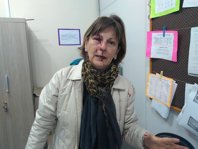 “Ele estava com o livro sobre as pernas e eu pedi: ‘Coloque seu livro sobre a mesa, por favor’. ‘Eu coloco o livro onde eu bem quiser’. ‘As coisas não são assim’. ‘Ahhh, vai se f*’. ‘Retire-se por favor’. Ele levantou para sair, mas no caminho jogou o livro na minha cabeça. Não me feriu, mas poderia. Na direção eu contei o que tinha acontecido. Ele retrucou que menti e eu tentei dizer: ‘Como, menti? A sala toda viu’. Não deu tempo para mais nada. Ele, um menino forte de 15 anos, começou a me agredir. Foi muito rápido, não tive tempo ou possibilidade de defesa. O último soco me jogou na parede”, relatou ela, dizendo estar “dilacerada” com o que aconteceu.