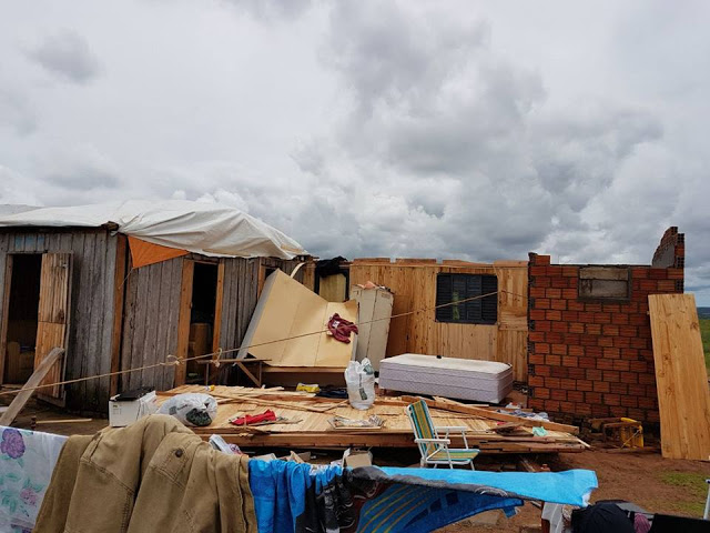 reconstrução de suas casas. Na BR 287 muitas árvores caíram sobre a rodovia, principalmente no trecho Santiago/Jaguari. Equipes