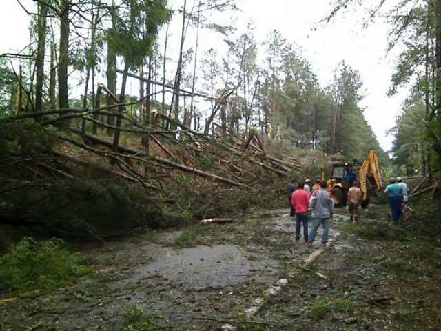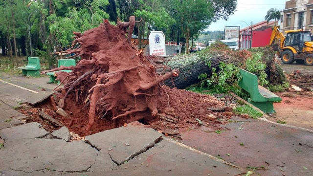 árvores e postes caídos. O estoque de lona não foi suficiente e a Prefeitura