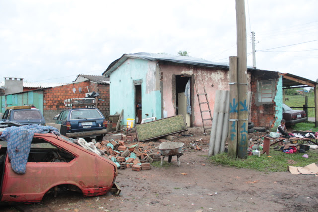 estragos foram em centenas de casas, escolas e no comércio. Pelas ruas, muitas
