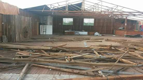 estragos. Dezenas de casas foram destelhadas, árvores e postes caíram e várias