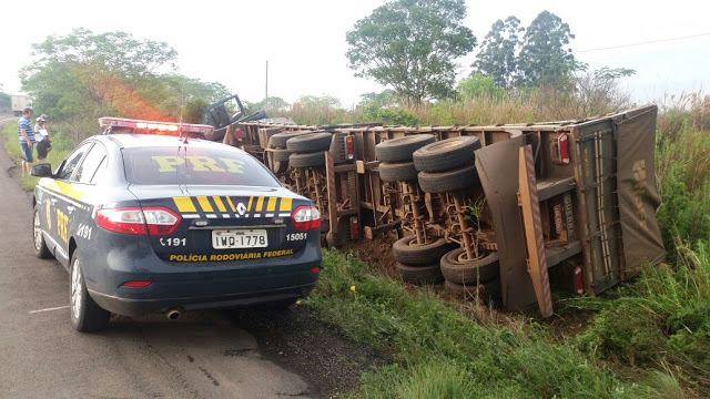 Dois carros seguiam à sua frente, sendo que um deles foi para o acostamento aguardar para entrar à esquerda e, o segundo, parou em cima da pista para fazer a mesma manobra, forçando o caminhão a desviar para a direita, já que vinha outro veículo pela frente. Com a manobra, o bitrem acabou saindo da pista e tombando, vindo a derramar parte da carga de soja.