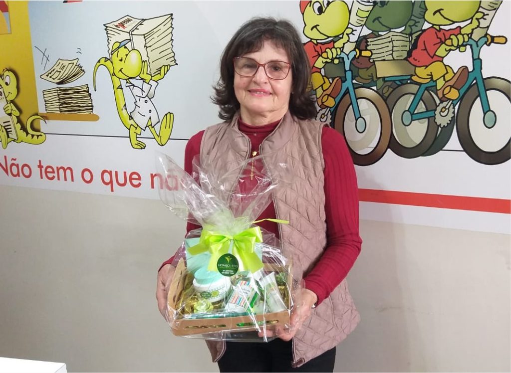 Regina Canterle é moradora da rua Almirante Saldanha da Gama, em Santiago. Ela fez uma assinatura online anual e, nessa categoria, ganhou um kit de produtos da Homeo Fito.