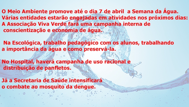No dia 4, palestra Água para todos, na Aurora Lubnon e no dia 7, na escola São José.