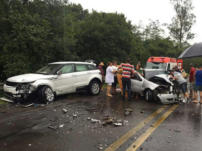 à tarde houve um acidente na BR 287, perto da Granja Jaguari. Três pessoas