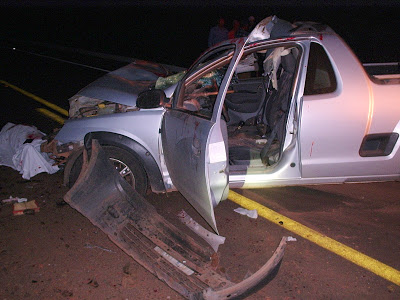 Os dois viajavam numa montana, que bateu na retro conduzida por Eraclides Gonçalves. O carro pesado ia com parte no acostamento e parte na faixa.