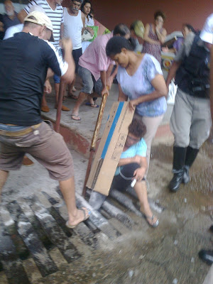 São Chico – Uma mulher ficou com a perna presa numa boca-de-lobo num dos boxes da rodoviária. A coitada ficou mais de três horas nessa situação constrangedora, pois a cidade não tem bombeiro, e foi preciso voluntários quebrarem o concreto pra soltar um dos ferros. A equipe da Samu e policiais da Brigada também ajudaram.