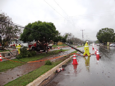 ninguém se machucou. Equipes da AES Sul trabalham para restabelecer a energia