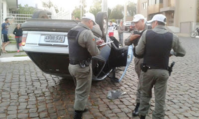 O motorista do Kadet descia pela 20 de “cabelo bem repartido” e na esquina com a Getúlio Vargas se perdeu. Bateu no meio-fio e capotou. Ele se foi e deixou o carro virado, mas depois retornou ao local para os procedimentos. Ninguém se machucou.