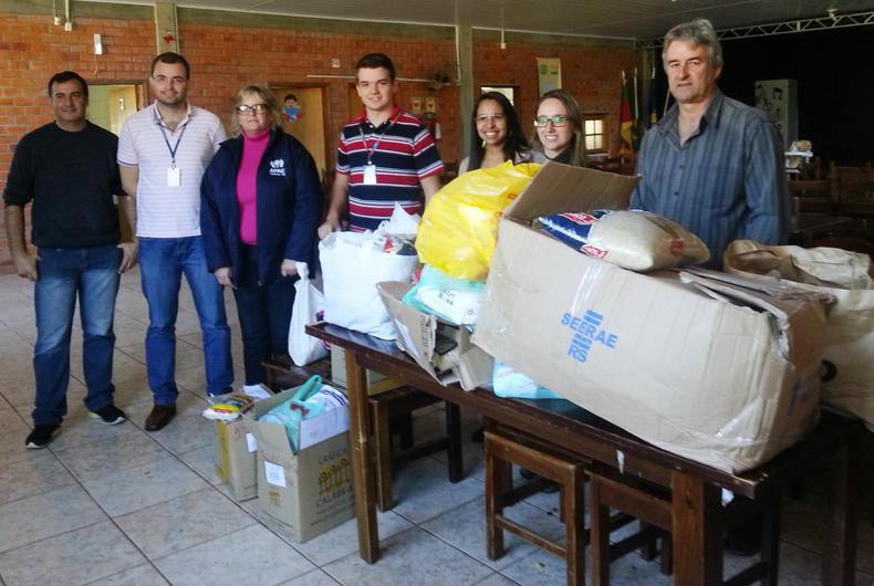 Santiago- A URI e o Sebrae entregaram mais de 200 quilos de alimentos e agasalhos para a Apae.Tudo foi arrecadado na palestra “Empreendedorismo em Dois Tempos”, que foi realizada em parceria entre o Sebrae e os cursos de Administração e Ciências Contábeis da URI.