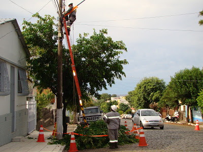 Homens a serviço da Aes Sul trabalham desde cedo no reparo em fios de alta e baixa tensão, devido ao vento forte que atingiu Santiago cedo da manhã, deixando alguns barros sem energia. Ao todo, 34 equipes estão na região para resolver esse problema. A expectativa é de que nas próximas horas o trabalho seja concluído.