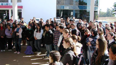 professores e alunos se reuniram em frente ao salão azul para rezar pelo