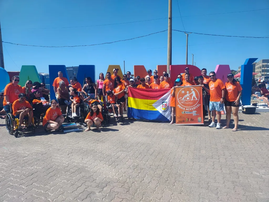 Santiago, RS – A secretaria de Esportes e Lazer levou alunos da APAE para a abertura do projeto Verão em Tramandaí, neste sábado (13). O objetivo foi proporcionar a pessoas com deficiência um banho de mar assistido através do projeto Praia Acessível, utilizando cadeiras anfíbio.