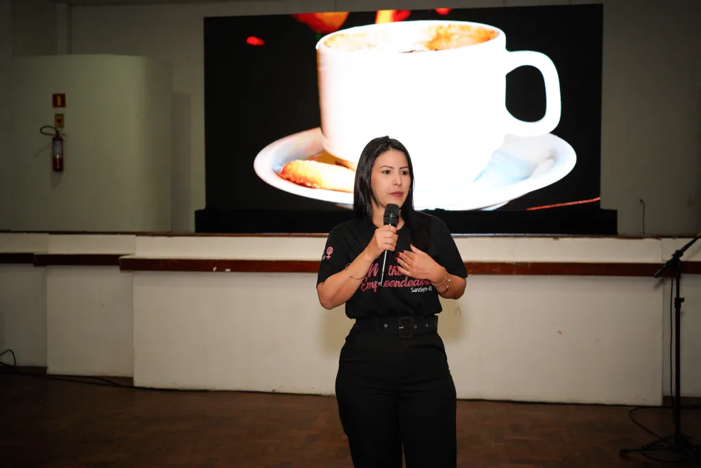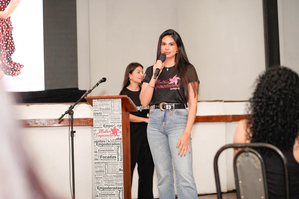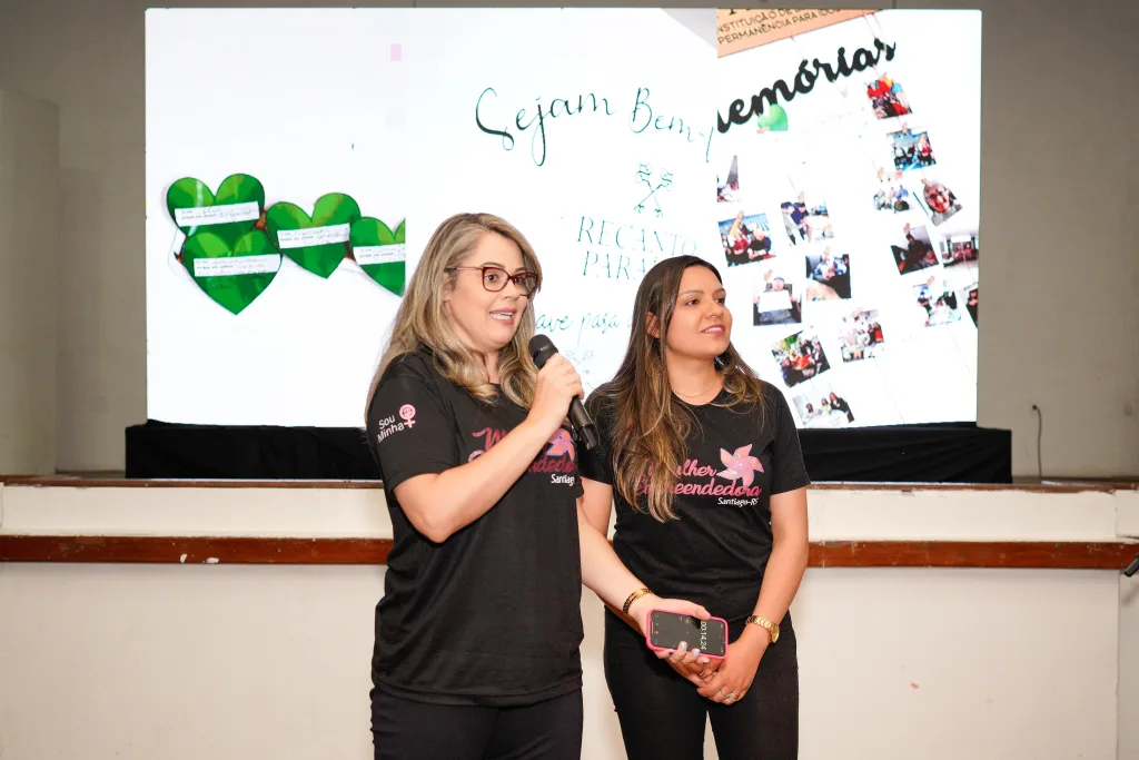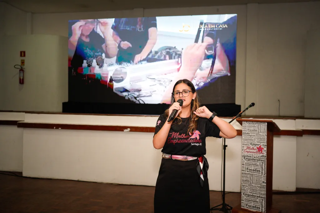 Na abertura do evento, a presidente da AME, jornalista Sandra Siqueira, fez um discurso, destacando as conquistas da entidade desde sua fundação, em 2018. Entre as ações marcantes estão os eventos Elas por Elas, com palestras e minicursos; 7 Mulheres 7 Negócios, que deu visibilidade a empreendedoras locais; o Talk Show da Mulher Empreendedora; e a Blitz da Mulher. A AME também foi responsável por mobilizar a criação da 1ª Sala das Margaridas do RS, a Capacitação para Mulheres, inspirou a criação do Dia do Empreendedorismo Feminino (hoje instituído por lei em Santiago) e conquistou o reconhecimento como entidade de Utilidade Pública Municipal.