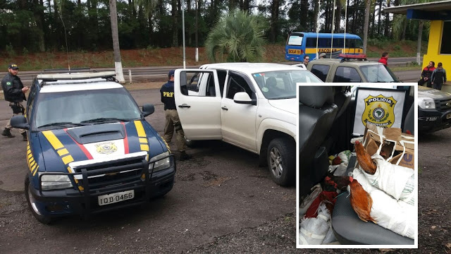 Santiago – Quase 20 galos de rinha foram apreendidos em uma camioneta argentina durante fiscalização da Polícia Rodoviária Federal na BR 287. Dois homens carregavam as aves em sacos plásticos com pés amarrados e mais 3 filhotes numa caixa de papelão. Também havia esporas, biqueiras e mais uma lista que comprovava a utilização das aves para rinha. Os dois homens foram encaminhados à Delegacia para o registro de crime ambiental e os galos ao canil (centro de zoonose) de Santiago.(fotos e vídeo: PRF)