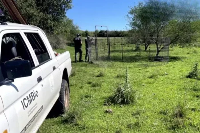 A ação faz parte do projeto Pró APA Sustentável, do Instituto Chico Mendes de Preservação da Biodiversidade (ICMBio). O controle é feito com jaulas autorizadas instaladas em cerca de 30 propriedades rurais na Área de Preservação Ambiental (APA) do Ibirapuitã.