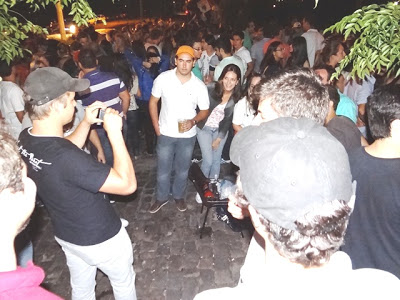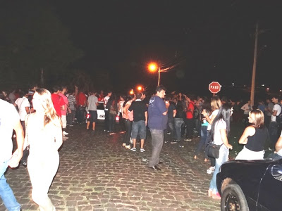Rua em frente ao Bar do Brauner foi tomada pelos universitários.