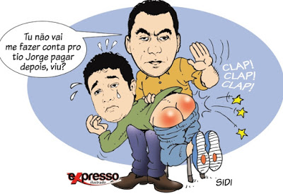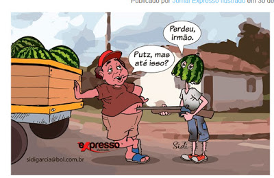 Depois da derrota do prefeito Pahim (PP) para Jorge Martins (PTB), esta charge do Expresso ganhou vida na cidade. Te mete com o Jorjão!
