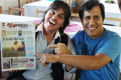 Em São Chico ele é bem conhecido, pois foi vereador pelo PDT. Não falamos do comediante Kiko Lemos (aí na foto com o Expresso), falamos do popular e inteligentíssimo Jeremias Oliveira, que agora faz parte da turma do Expresso e também colabora com o Nova Pauta. Foi dele a foto dos cães que ganhou o Estado. Não que isso represente muita coisa, mas o fato é que ele de fato chegou primeiro no fato. Jeremias cuida de Jaguari, mas não se descuida de sua terra, a velha São Chico de Assis. Valeu, Jeremias, tua foto fará história!