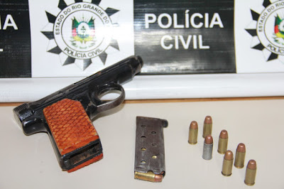 Santiago – A Polícia agiu rápido e colocou as mãos nos assaltantes que na noite de sexta atiraram no empresário Gustavo Maia, dono do Clube dos Trinta. Cristiano de Lima Machado, 20, e um adolescente, 16, foram pegos no bairro Ana Bonato. A arma, uma pistola 765, foi achada em uma sanga, no local conhecido como poço da cruz. Na Delegacia, Cristiano contou que durante o assalto mandou que o comparsa amarrasse Gustavo e a funcionária da conveniência. O empresário conseguiu reagir, correndo para os fundos da loja enquanto a funcionária fugia. Neste momento, o marginal atirou três vezes, pois temia que Gustavo voltasse armado. O assaltante foi preso e levado ao presídio. Já o adolescente acabou na Fase, em Santo Ângelo, pois já estava com mandado de apreensão por outros crimes.