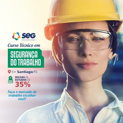 São opções de cursos Técnicos em Enfermagem,em Radiologia e em Segurança do Trabalho  com Bolsas de Estudos de até 35%.