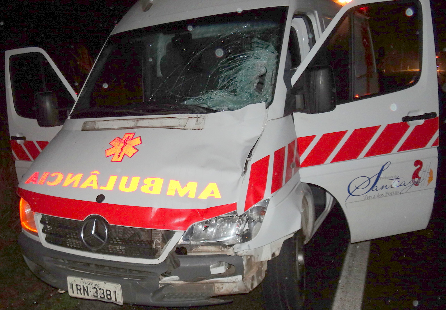 Uma ambulância da prefeitura de Santiago, dirigida por Luis Alberto Funk, 40 anos, atropelou e matou o jaguariense Cleomir Anselva Nunes, 46 anos. O acidente aconteceu na noite de ontem, às 21h50min. A vítima foi atingida no momento em que atravessava a estrada, perto da Granja Jaguari, e morreu na hora.