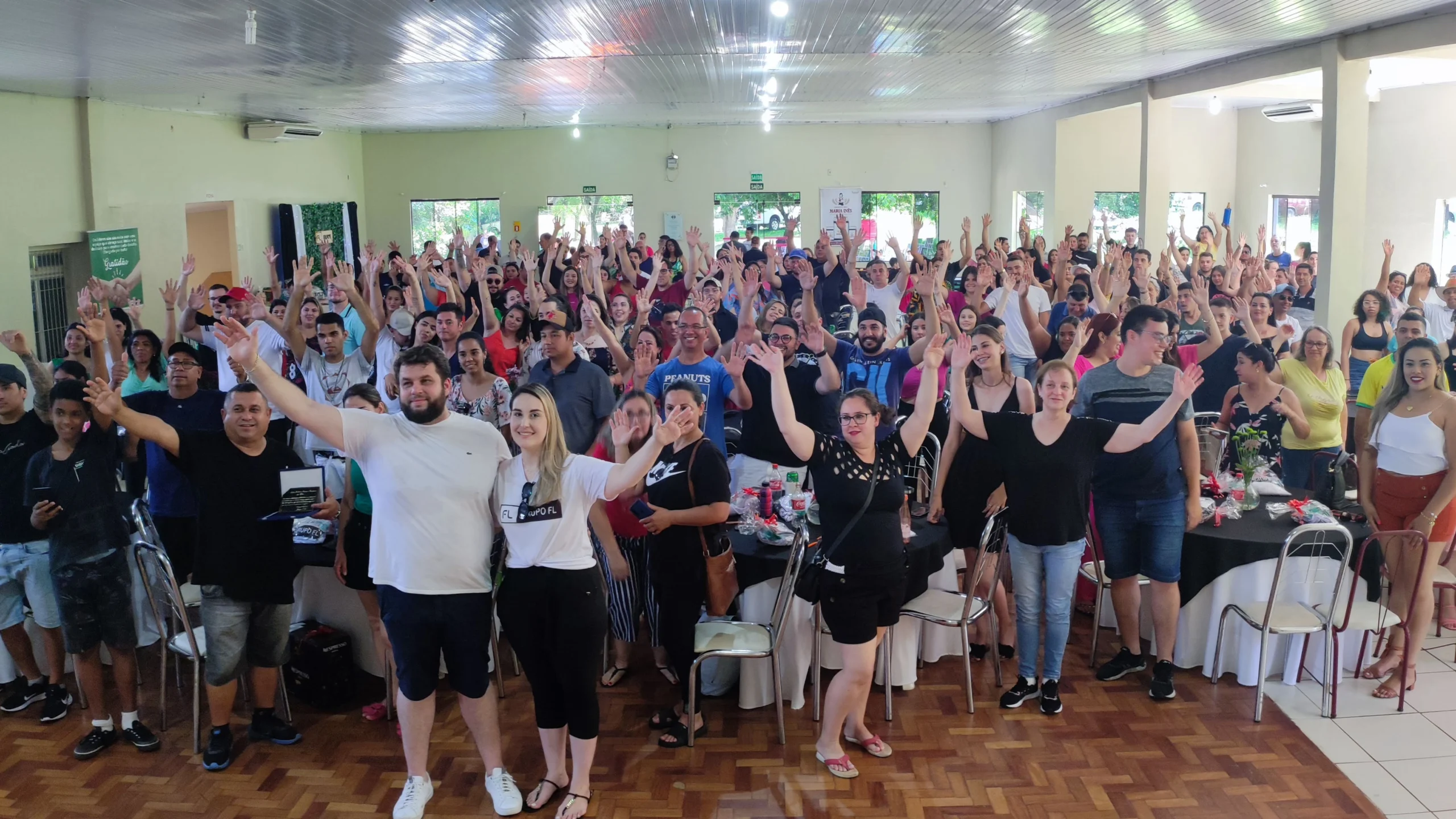 O santiaguense Fernando Behr, diretor presidente da rede Nosso Mercado, organizou uma festa de fim de ano para as equipes de Santiago, Cacequi e São Borja. Hoje são mais de 170 funcionários nas três cidades e cada um trouxe familiares, lotando a sede da Vale in Fiori em Santiago.