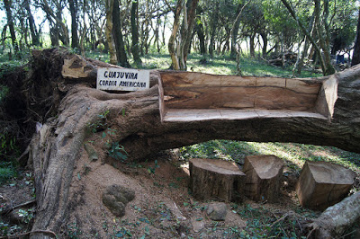 Santiago – Do limão se fez uma limonada. Ou melhor: de uma enorme guajuvira que despencou, se fez um banco. O criador dessa arte é Valdir Trombini, da secretaria de Meio Ambiente. Ele achou de entalhar um banco na árvore caída em vez de jogá-la fora.